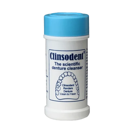 To use, dissolve a teaspoonful of Clinsodent powder in a container filled with water and immerse the denture overnight. Before use, rinse and brush the denture thoroughly with water.